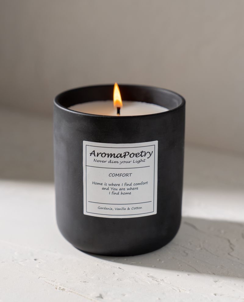 Our Comfort candle will give you just that, comfort! This luxurious candle is blended with the delicate white floral Gardenia, rich wood, luscious vanilla and soothing cotton.