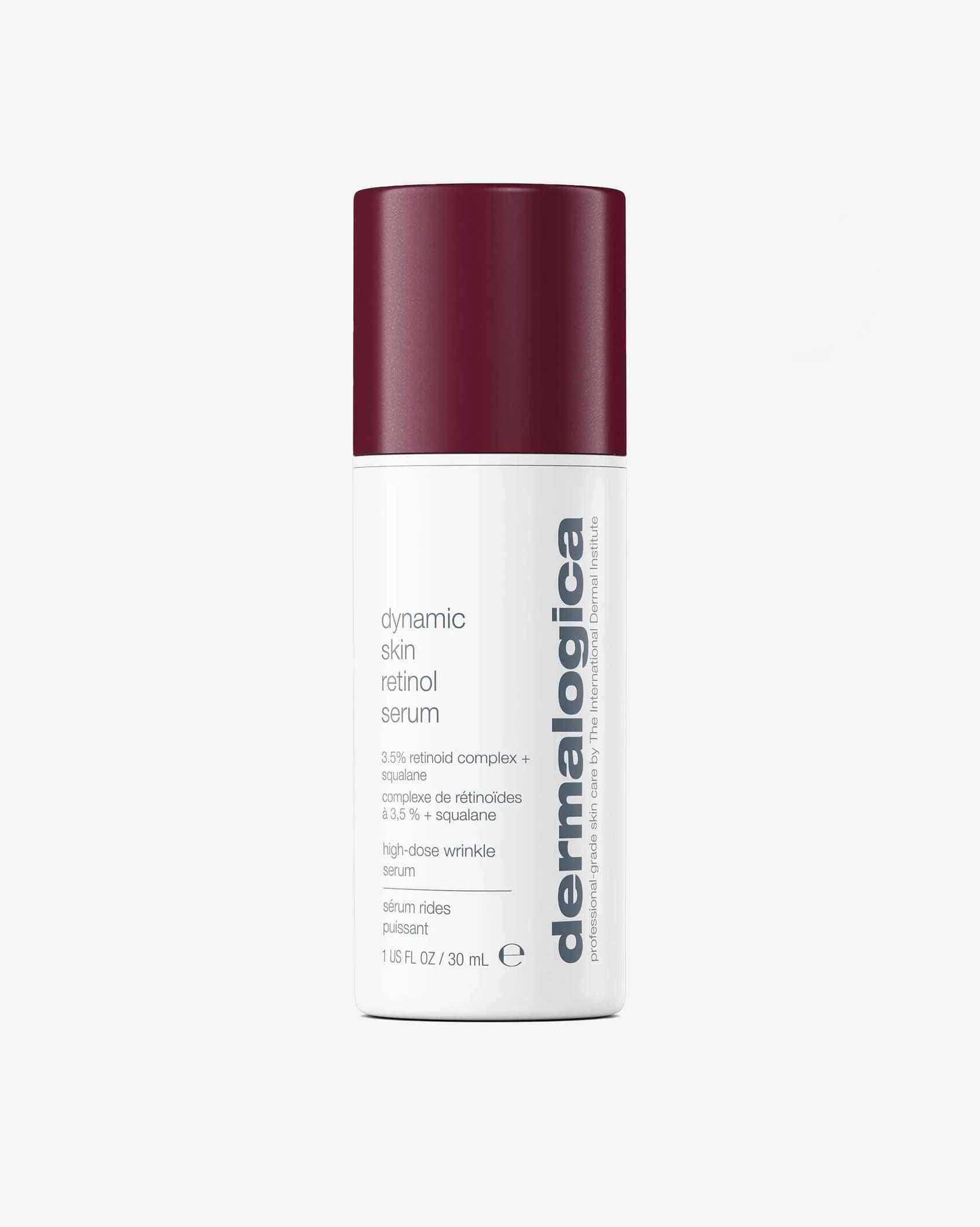 Our high-dose wrinkle serum visibly reduces the 4 signs of skin aging in just 2 weeks.* Gentle enough for nightly use, this serum features a 3.5% Retinoid Complex + Squalane to minimize the appearance of pores, smooth texture, even tone, and reverse the look of wrinkles. Dynamic Skin Retinol Serum delivers the benefits of a retinol while maintaining the health of the skin barrier.