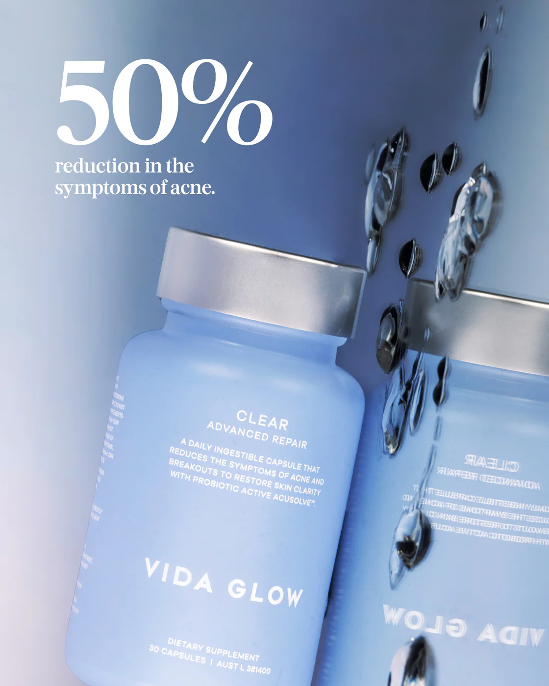 Achieve smoother, clearer skin with Clear, a once-daily capsule from Vida Glow’s Advanced Repair range. Engineered to target acne at its source, Clear works to combat breakouts, blackheads, excess oil, and inflammation caused by hormones, stress, diet, and lifestyle factors. This transformative formula heals your skin from within, restoring clarity and radiance for all ages.